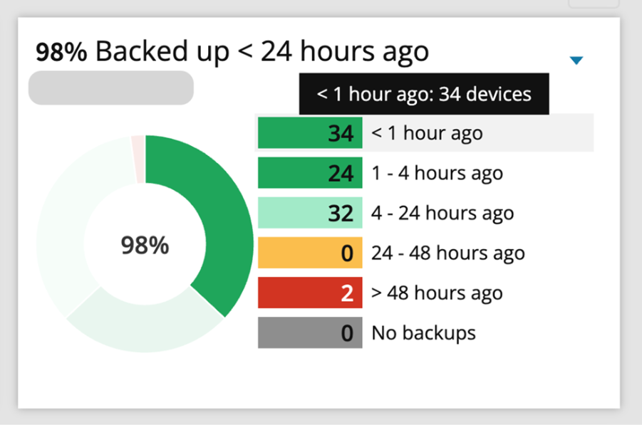 Um gráfico de rosca aprimorado foi adicionado ao painel principal para fornecer visibilidade clara sobre sessões de backup de alta frequência (ou seja, intervalos de backup inferiores a 4 horas e inferiores a 1 hora). Isso permite a identificação rápida de workloads configurados para backups frequentes, apoia o cumprimento de SLAs e ajuda MSPs e equipes de TI a gerenciar proativamente o desempenho de backup para workloads críticos.